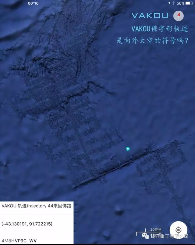 VAKOU佛字形 軌跡,**令我們驚奇的圖像,這是一種智能文明的行為結(jié)果,是向外太空的符號(hào)嗎?佛形軌跡,之后又發(fā)現(xiàn)很多的類(lèi)似軌跡;這可能就是馬航MH370失蹤的區(qū)域。